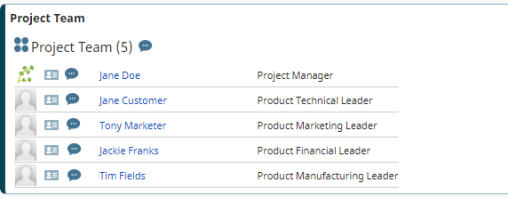 • Team - Provides a place to display users assigned to projects including project manager or team leader, project team members, workflow action owners, and gatekeepers. Click Advanced Settings Icon when defining the pod and select Project Team, Workflow Action Owners, or Gatekeepers. Only one group of users can be selected to display per pod. See Project Teams for more information.